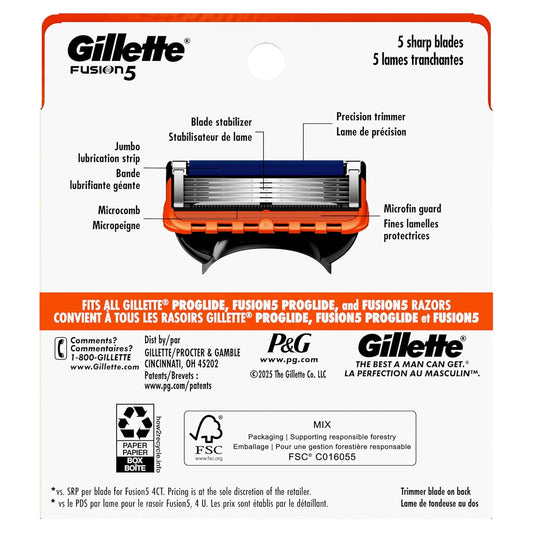 Gillette Fusion5 Razor Refills for Men, 8 Razor Blade Refills