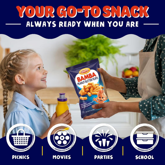 Osem Bamba Peanut Butter Puffs - Peanut Butter Puffs Bulk, Vegan PB Snack with Crunch for Kids, Grain Free Protein Snack, No Sugar, Family Pack - 0.7oz Bags 8 Pack