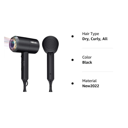 SHRATE Lightweight Ionic Hair Dryer with Diffuser - Powerful 1800W Blow Dryer for Fast Drying - Professional Low Noise Mini Hair Dryer for Travel, Gifts, Hair Styling (Black)