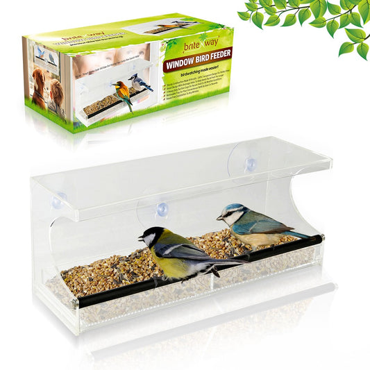 Window Bird Feeder - See-Through Acrylic - Clear, Removable Slide Out Tray
