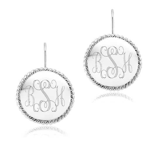 Personalized Braided Round Monogram Earrings Initial Earrings