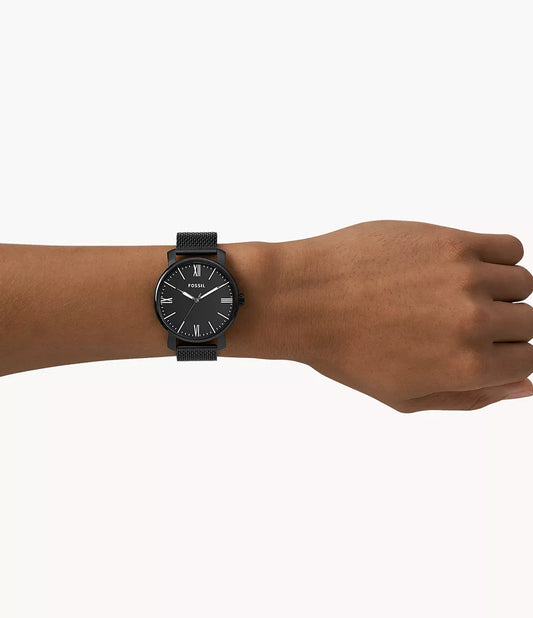 Fossil Rhett Three-Hand Black Stainless Steel Watch
