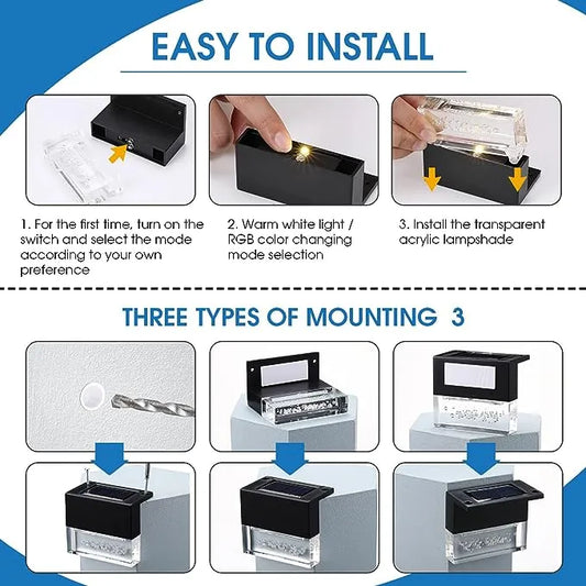 6 Pack LED Solar Deck Lights For Step, Fences and Steps Waterproof Warm White/Color Changing