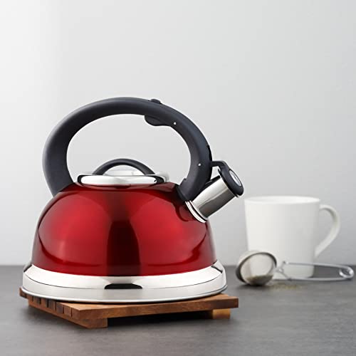 Amazon Basics Stainless Steel Tea Kettle, 2.5-Quart, Red