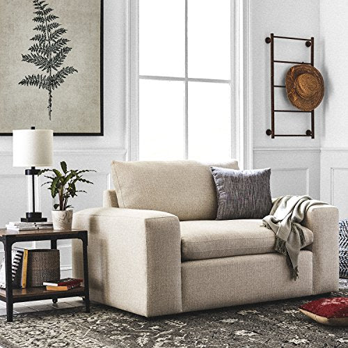 Amazon Brand – Stone & Beam Glass Column Living Room Table Desk Lamp With Light Bulb and Linen Shade, 23"H, Black