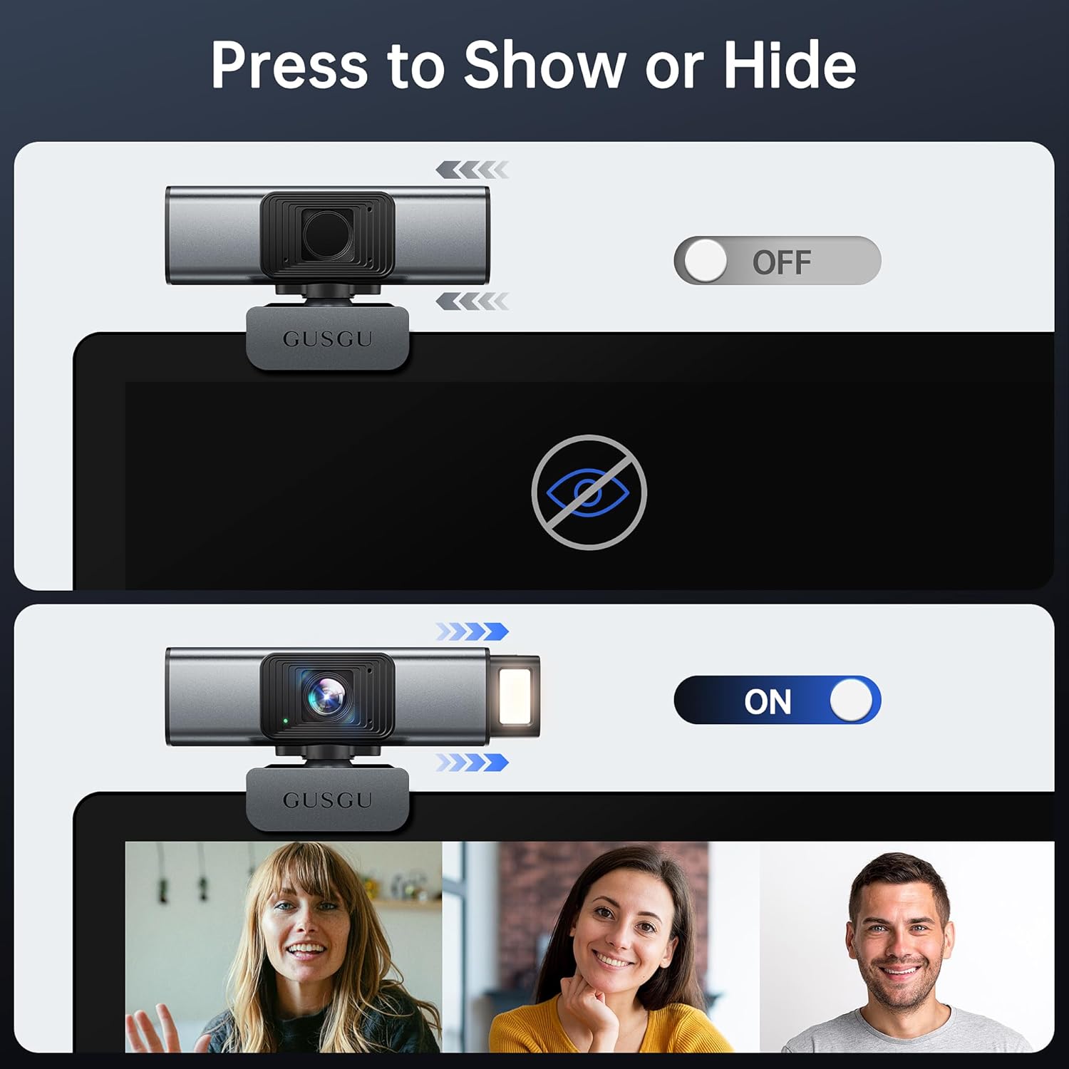 GUSGU G940 2K Quad HD Webcam for PC, with Microphone & Privacy Protection